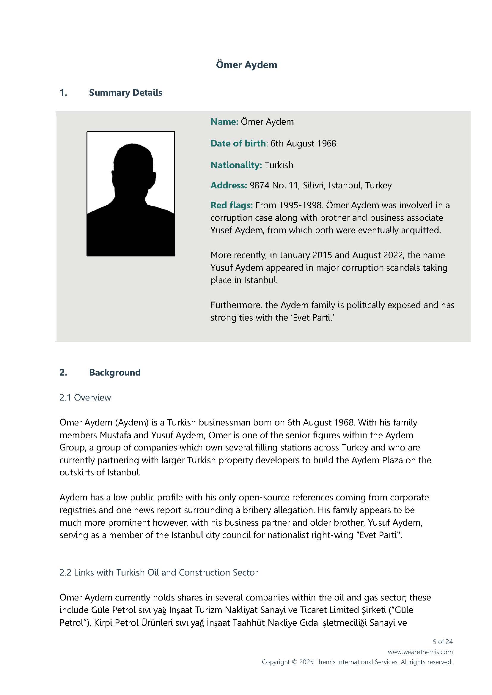 Download now to explore a full Level 3 Enhanced Due Diligence report and see the depth of investigative insight behind Themis intelligence.